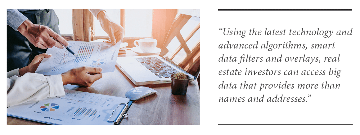 But data, being what it is today, is able to simplify the job of the investor looking for properties. Using the latest technology and advanced algorithms, smart data filters and overlays, real estate investors can access big data that provides more than names and addresses. Smart tech and big data combined also puts phone numbers, email addresses, social profiles into the hands of investors making direct mail an alternative rather than the norm. With the wealth of data now out there, it’s a fact that the aggregation of the right data for the job can empower progress in any industry.