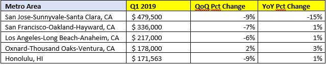 ATTOM Data wanted to showcase those markets, where home sellers are acquiring some serious gains. Among the 124 metropolitan statistical areas with a population greater than 200,000 and with at least 1,000 single family home and condo sales in the first quarter of 2019, those with the greatest dollar gain occurred mainly on the West coast.