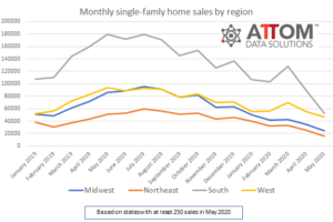 While the level of sales activity is down less in the West, prices in that region generally dropped most in May 2020. They lost ground in about two-thirds of the West, compared to roughly half of the South and Midwest, and a third of the Northeast.