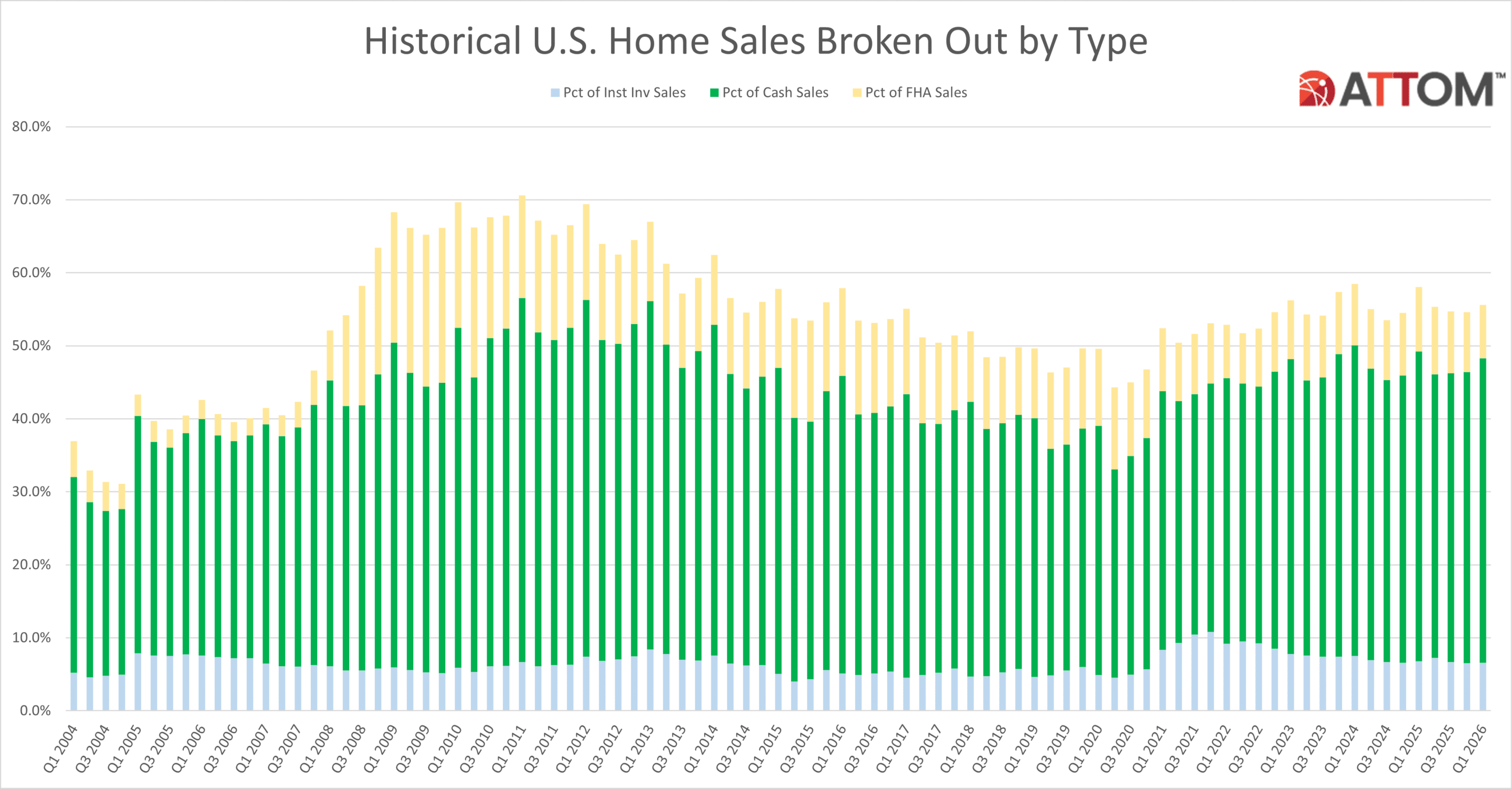 In the first quarter of 2026, homes sold to institutional investors accounted for 6.6 percent of all homes sold nationwide, down from 6.8 percent at the same time last year.