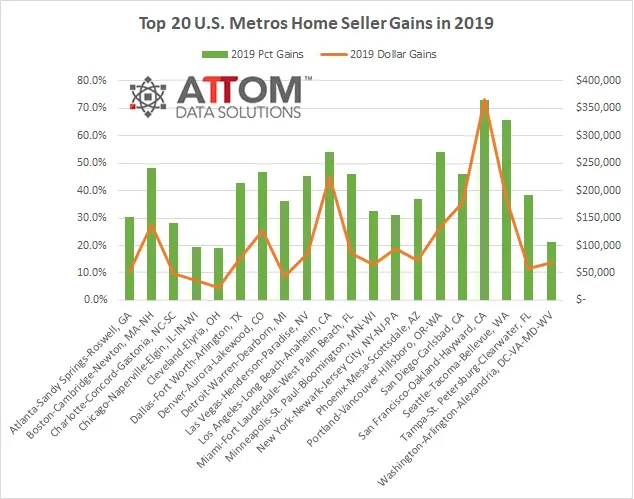 Here’s a look at seller gains in 2019 for each of the top 20 U.S. metro areas: