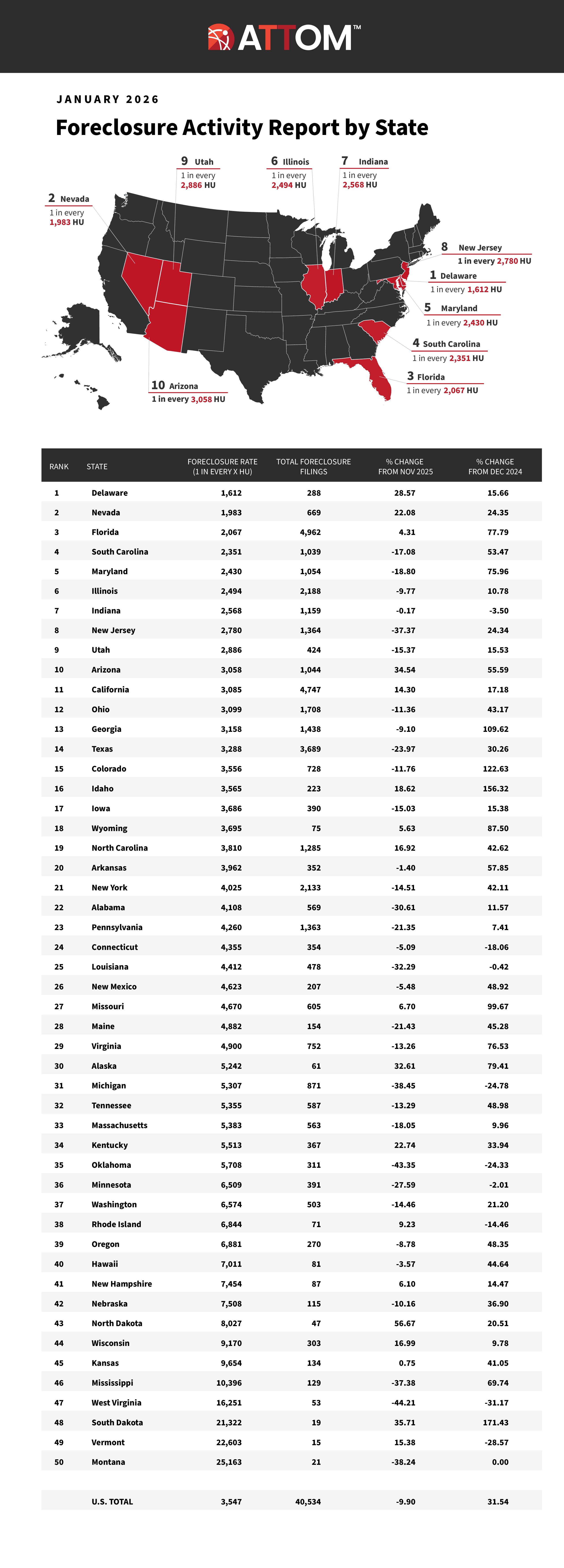 Foreclosure Rates by State – January 2026