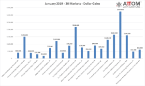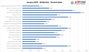ATTOM Data Solutions took an early look at home seller gains from January 2019 in the 20 markets anticipated to be covered by Case-Shiller next week.