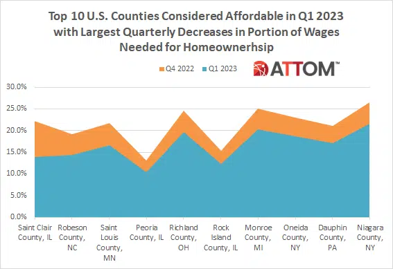 According to ATTOM’s just released Q3 2022 U.S. Home Affordability Report, median-priced single-family homes and condos are less affordable in Q4 2022 compared to historical averages in 99 percent of U.S. counties. The report notes that figure is far above the 68 percent of counties that were less affordable in Q4 2021. ATTOM’s latest home... Read More »